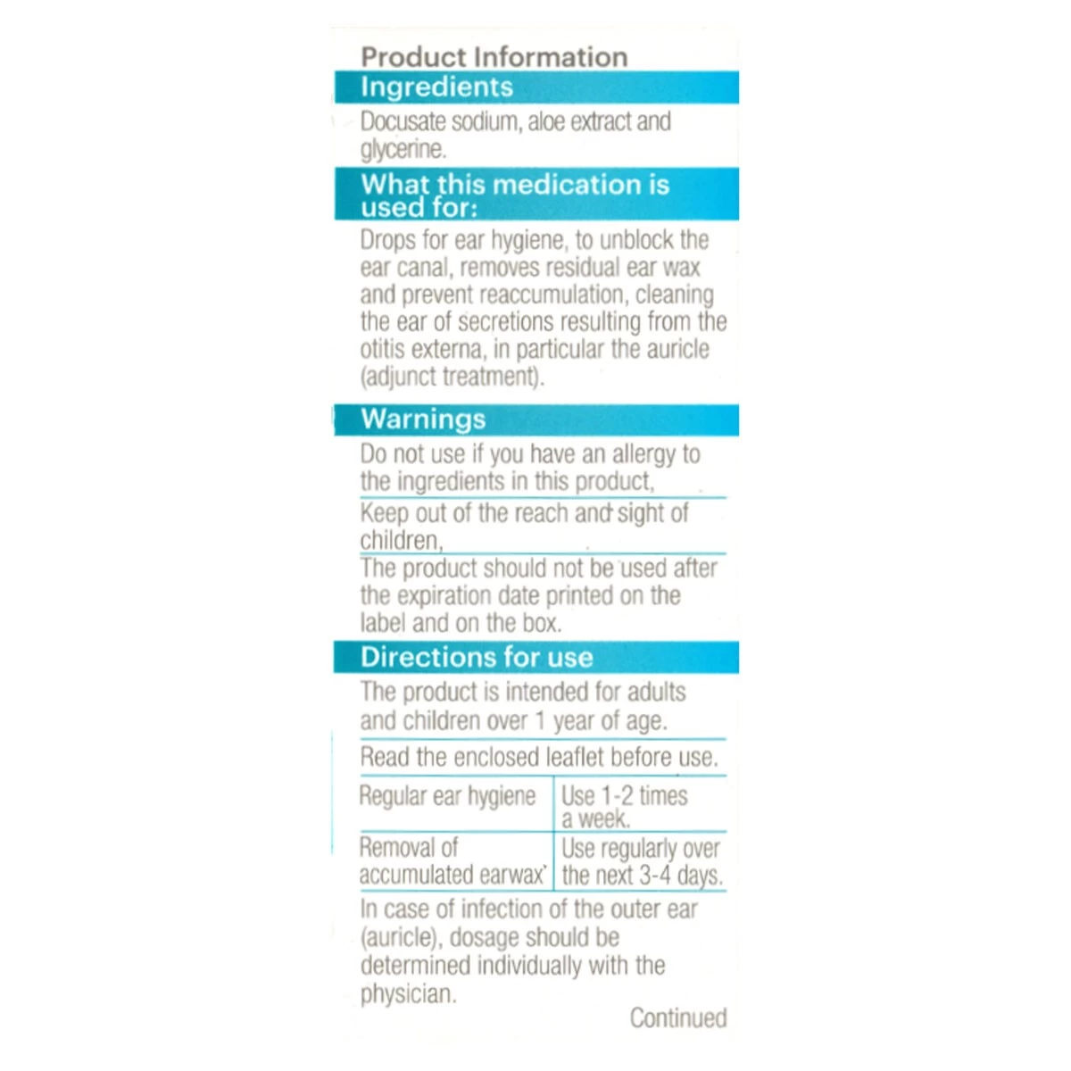 Removal of accumulated earwax: use regularly over the next 3-4 days.