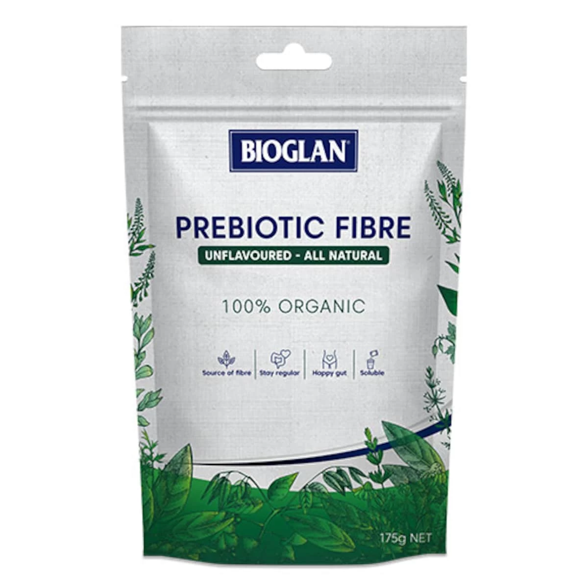 Bioglan’s Prebiotic Fibre, has 4.5g of fibre per 5g serve. It is obtained from 100% organic inulin & promotes the good bacteria in your gut.
