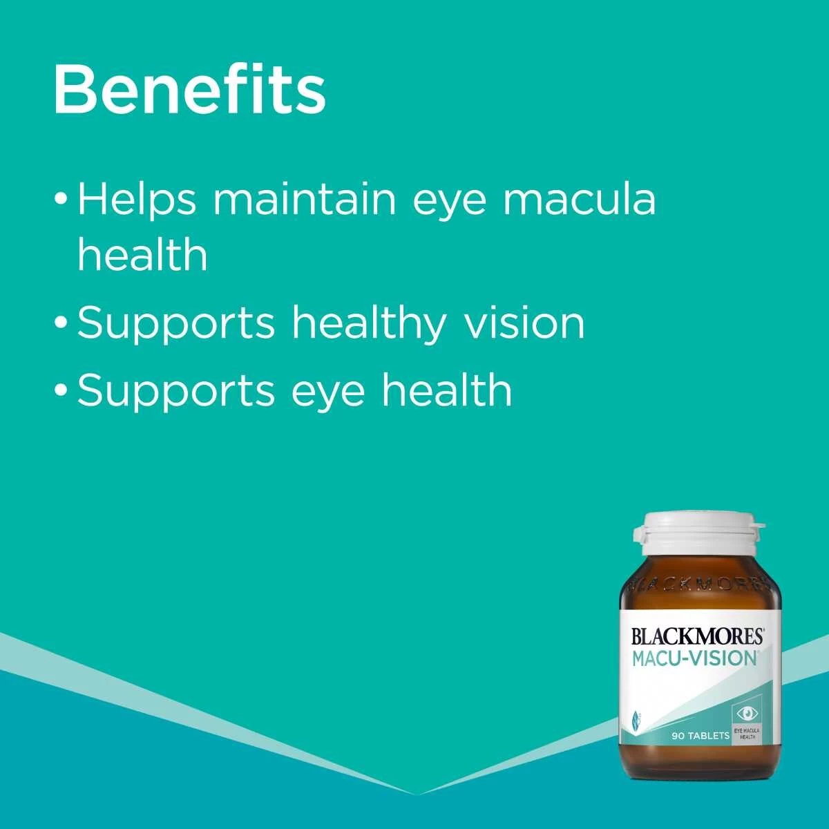 Blackmores Macu-Vision has antioxidant nutrients Vitamin E, C & Zinc that support eye macular health & healthy vision. Also reduces free radical damage in the eye