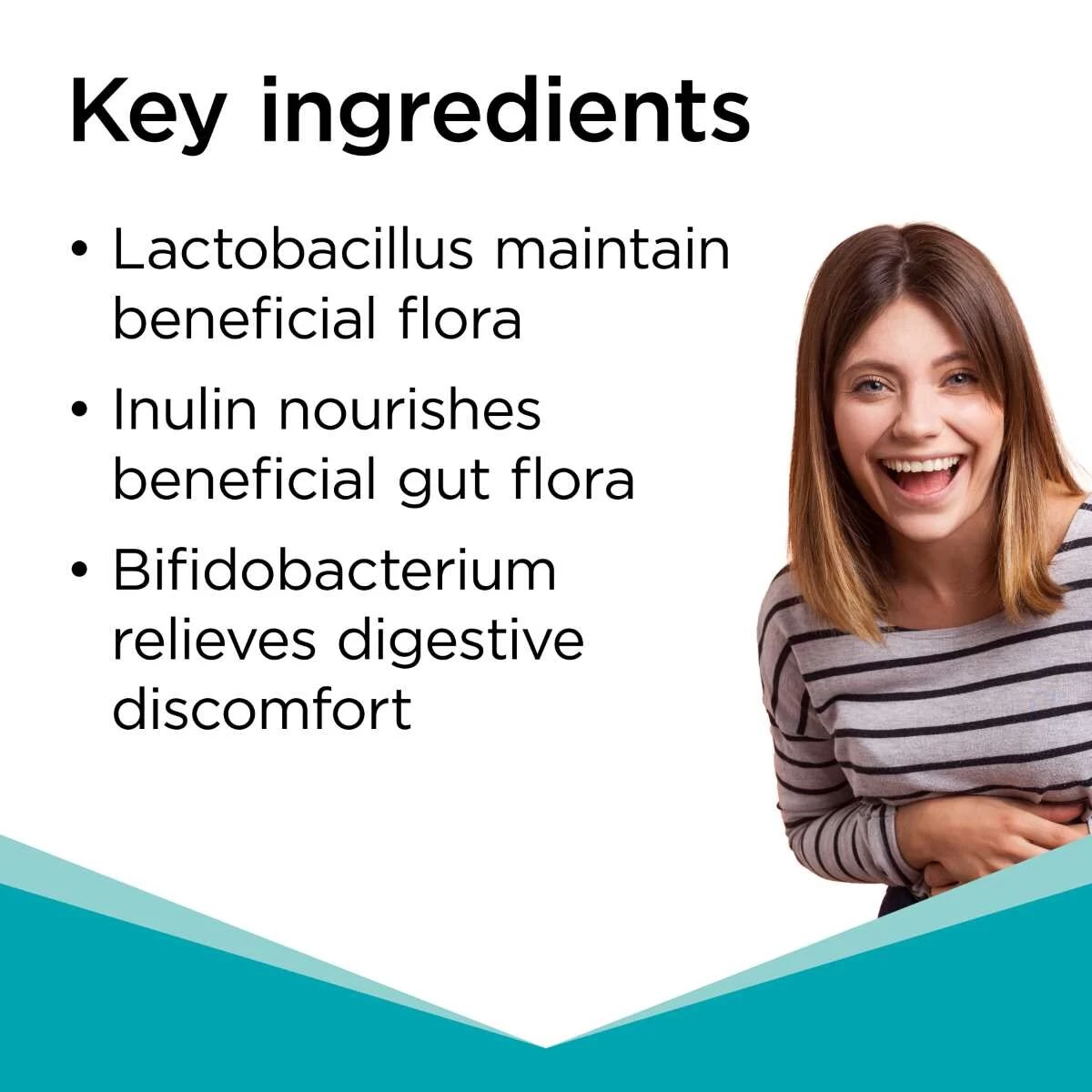 Lactobacillus acidophilus ATCC 700396 7 billion CFU Lactobacillus paracasei Lpc-37 7 billion CFU Bifidobacterium lactis Bi-07 7 billion CFU Bifidobacterium lactis BI-04 7 billion CFU Bifidobacterium lactis HN019 2 billion CFU (Total good bacteria 30 billion CFU) Inulin (prebiotic) 100 mg