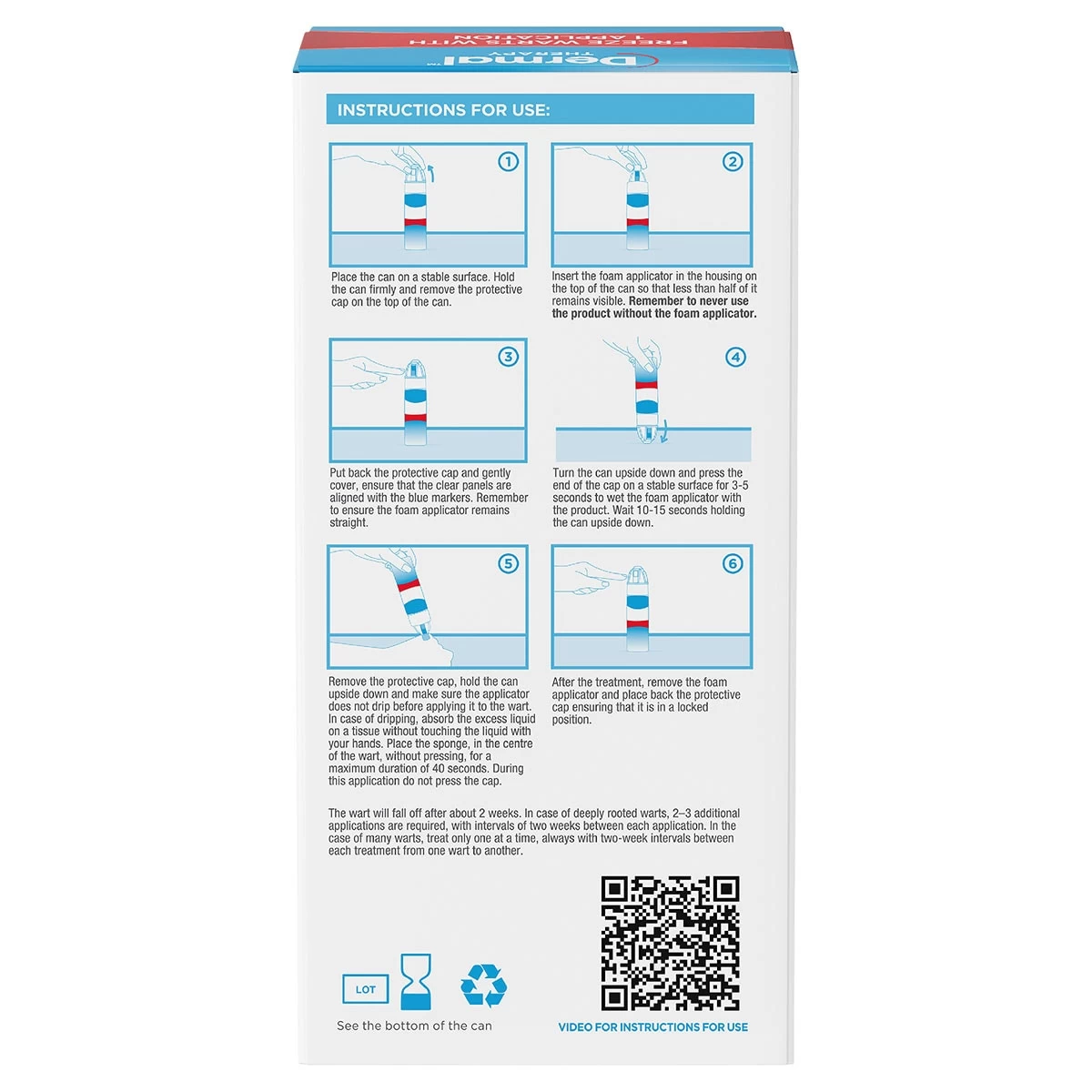 Apply only on warts. Do not apply the product without using the applicator. Do not use the product on the same wart more than 4 times. Change the sponge for each wart to be treated. Do not use in case of diabetes. Do not use on children under the age of 4. Do not use the product on formations other than warts. If in doubt about the nature of the formation consult your doctor. Misuse of the product can cause burns and skin injuries. In case of liquid gas dripping on the skin surrounding the wart, stop the treatment immediately, absorb the liquid gas with a clean paper and consult a doctor. Do not dispense without having fitted the sponge.