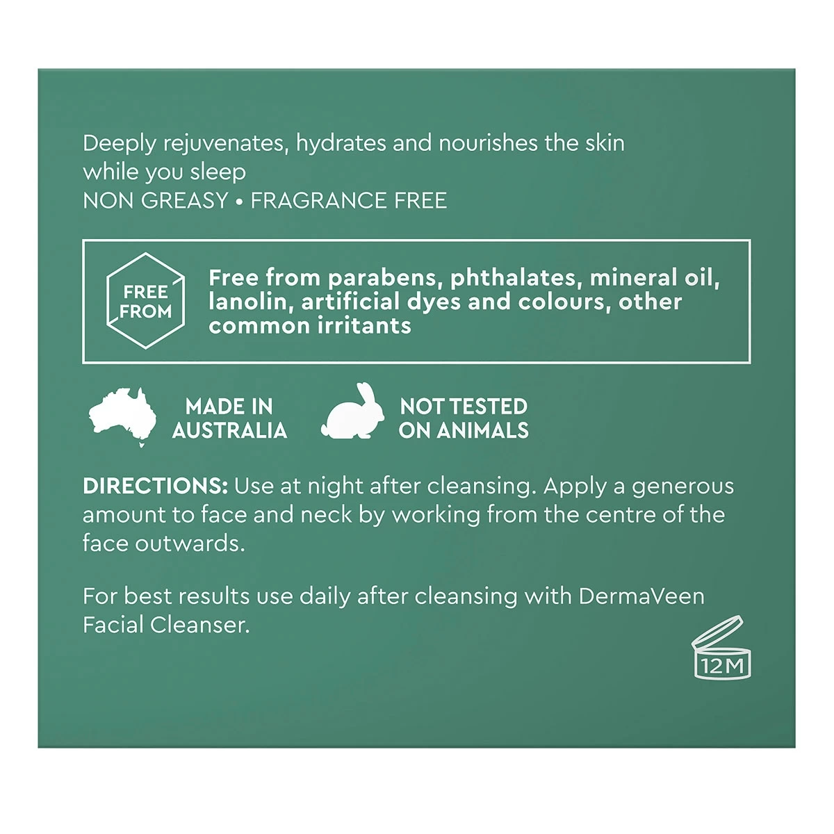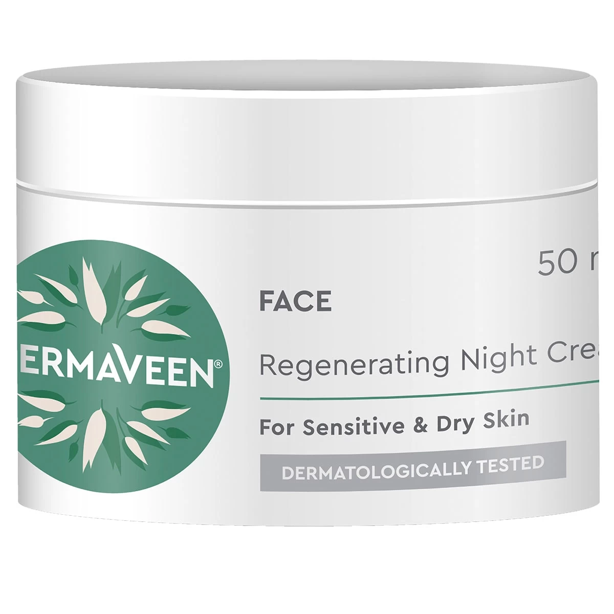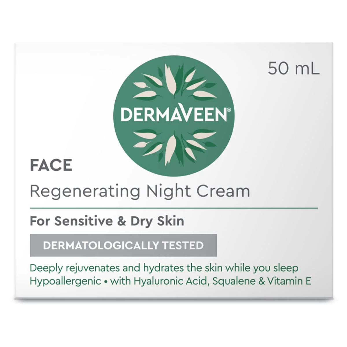 Regenerating night cream by DermaVeen, rejuvenates, hydrates and nourishes dry, sensitive skin while you sleep. It boosts your skin’s natural regeneration process at night.