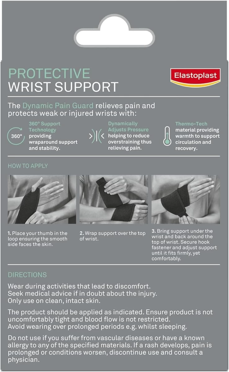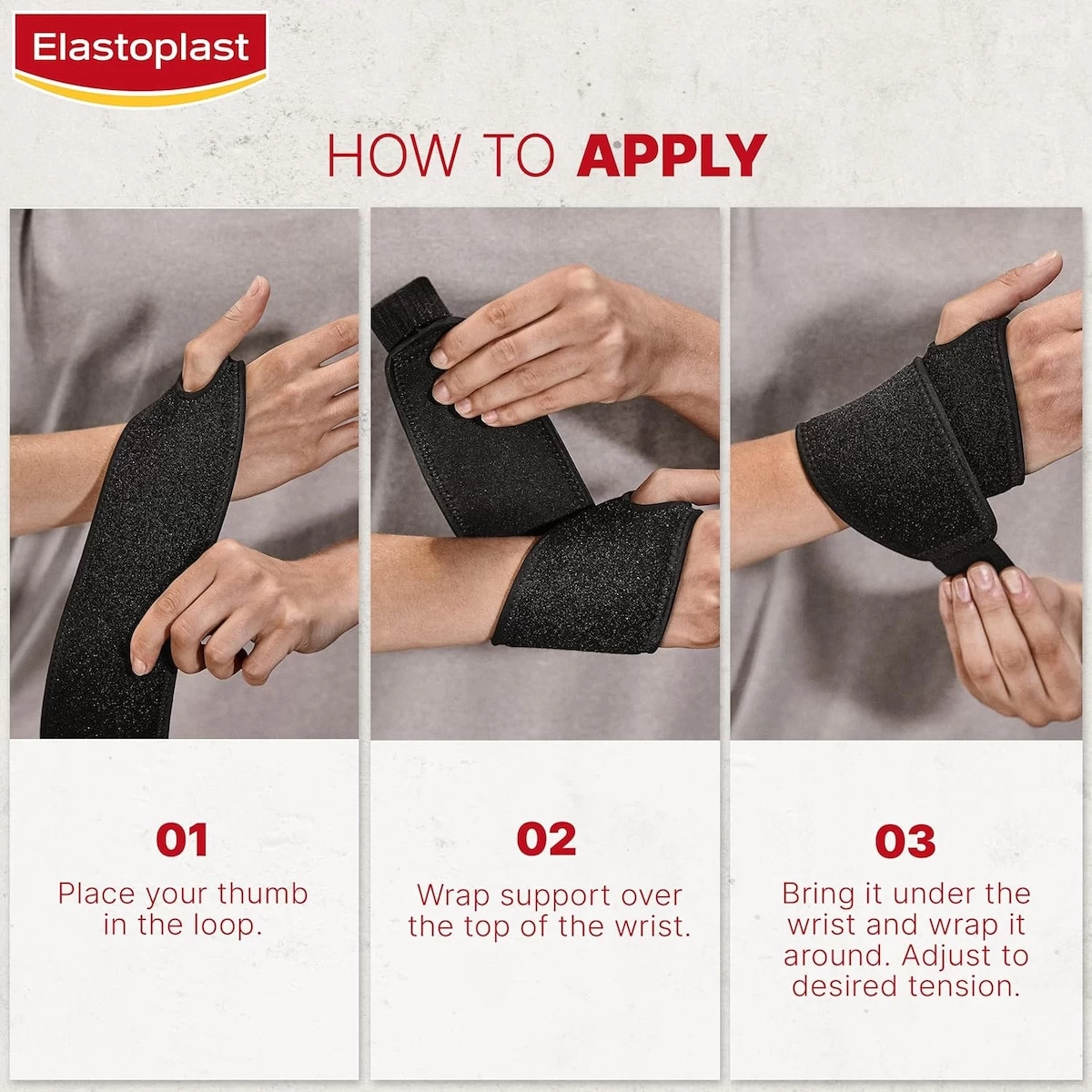Elastoplast Adjustable Wrist Support provides stability and compression for weak or injured wrists. Ideal for recovery from mild sprains and strains or the treatment of carpel tunnel syndrome. Works as a wrist brace to limit motion – protecting tender wrists and preventing further injury.