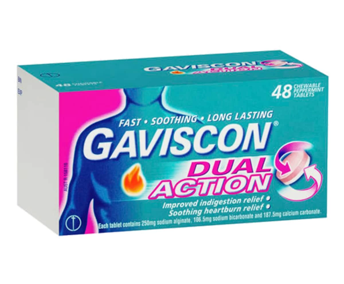 Gaviscon Dual Action tablets, helps provide fast, soothing and long lasting relief from the pain & discomfort of heartburn (gastric reflux) and indigestion. Peppermint flavour.