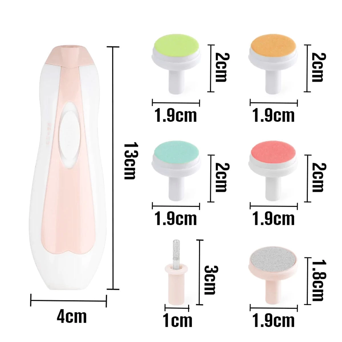 This product contains small parts that may become a choking hazard. Keep this product out of reach of children. Do not use rechargeable batteries in this product. Do not use this product for anything other than its intended use. Do not hold the rotating attachment to any part of the body for extended periods of time as this may cause friction burns. Do not place directly onto skin. It is not recommended using this product on nails that are weak, damaged, diseased or brittle.