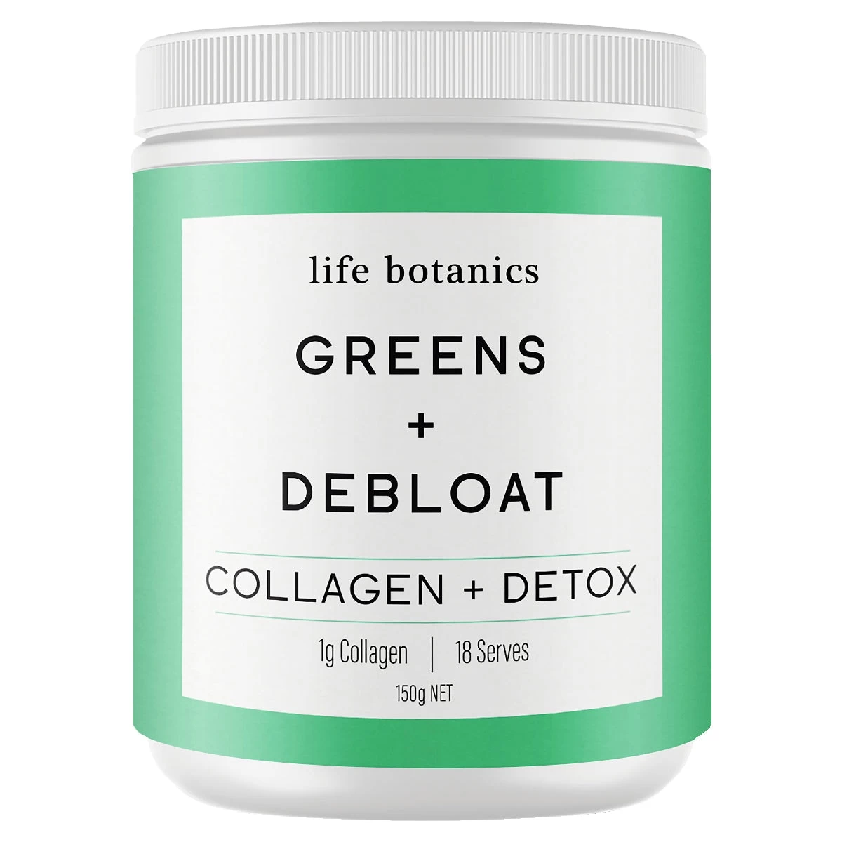 Life Botanics Greens + Debloat Powder is a fantastic combination of antioxidants, collagen and prebiotics made with organic greens and our pure marine collagen it helps nourish the body from the inside out.