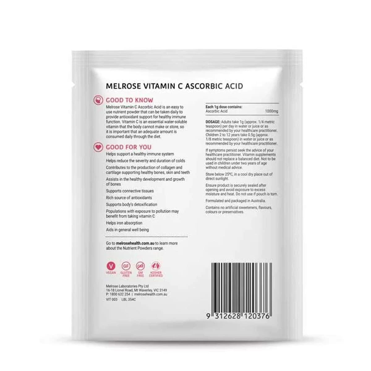 Melrose Vitamin C Ascorbic Acid is a 100% pure form of Vitamin C. It supports immune system health, whilst working as an antioxidant to prevent free radical damage to body cells