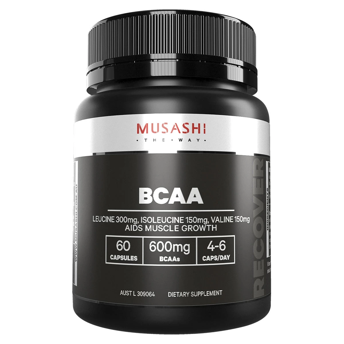 Musashi BCAA capsules provide 600mg of Branched Chain Amino Acids in a 2:1:1 ratio to support muscle protein stores during exercise. It also assists with muscle repair following workouts or training.