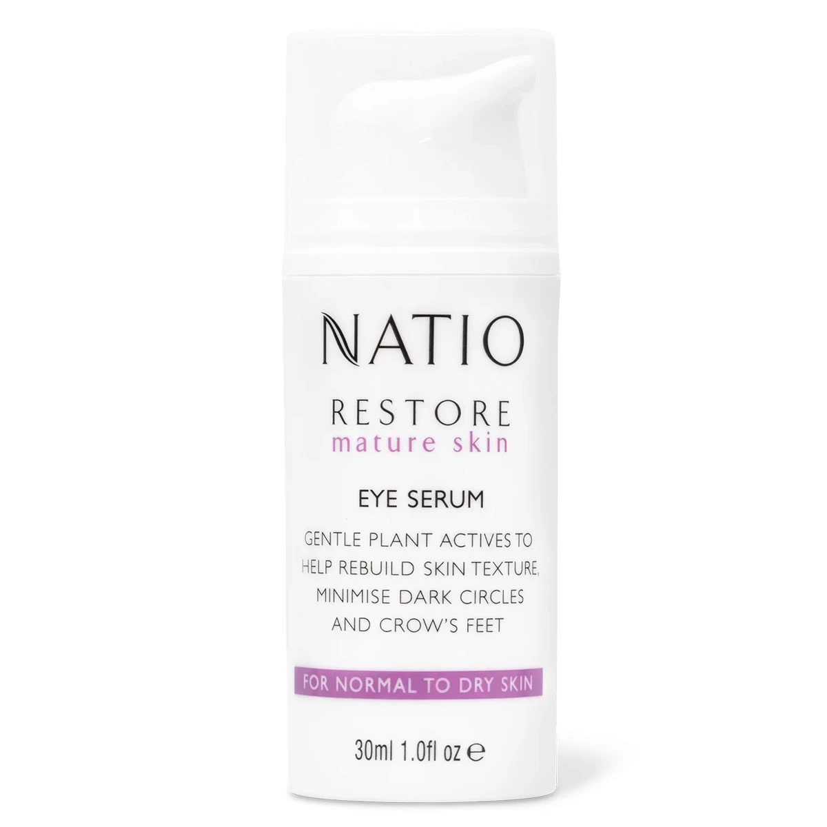 Restore eye serum by Natio, is made with intensely hydrating Hyaluronate & active plant extracts to help soften lines, crow’s feet and diminish dark circles.