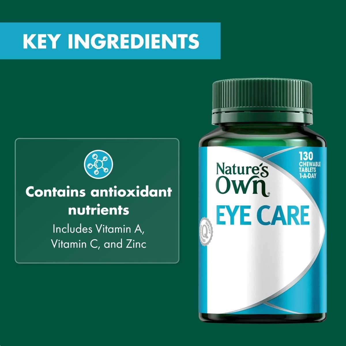 Nature’s Own Eye Care contains antioxidant nutrients Vitamin A, Vitamin C and Zinc.