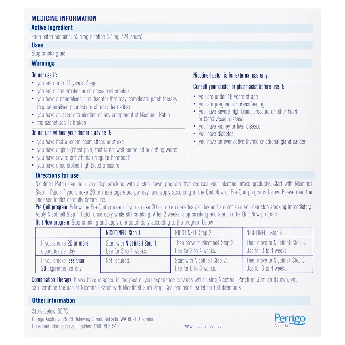 Step 2 – consists of 14mg patches, for people who smoke less than 20 cigarettes a day. Patches with this strength can be used daily, for 6 to 8 weeks before progressing to step 3.