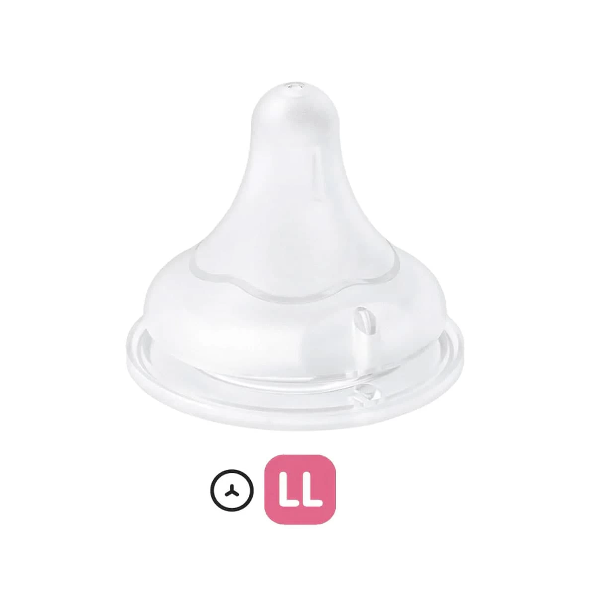 The opening of the nipple is slightly bigger Y-cut than L size nipple to allow more milk to drip out. Milk drips out when there’s pressure on the nipple. This helps babies to control the flow of milk and train their sucking ability as babies at this age have developed a stronger jaw muscle.