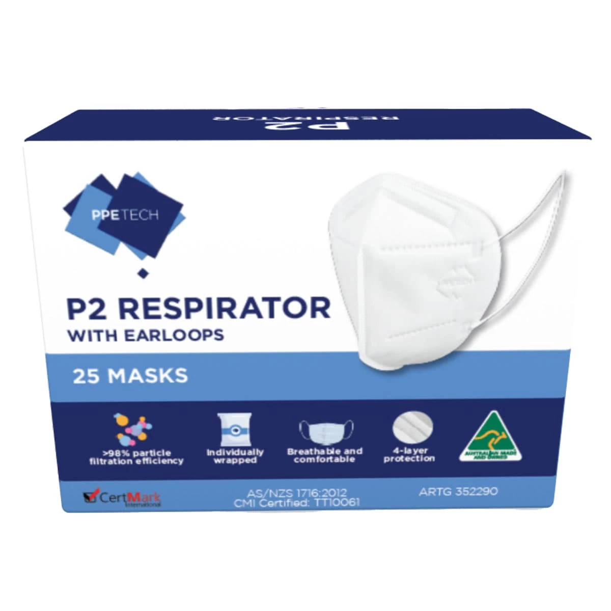 PPE Tech P2 Earloop Face Mask 25 Pack