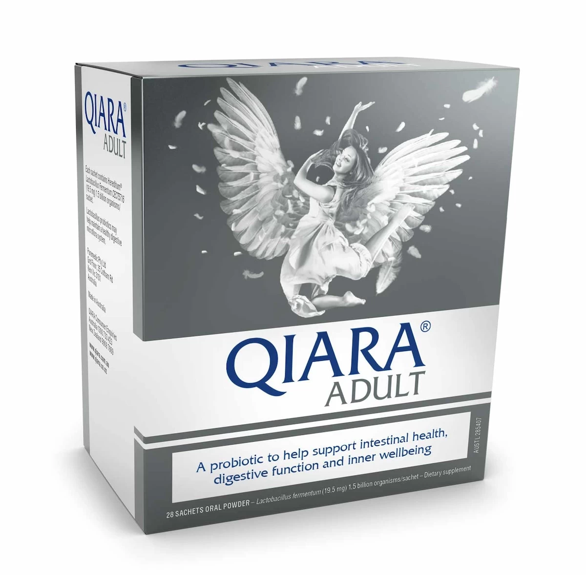 Each box of Qiara Adult contains 28 single-dose sachets of oral powder and is recommended for adults, seniors, and teenagers over 12 years.