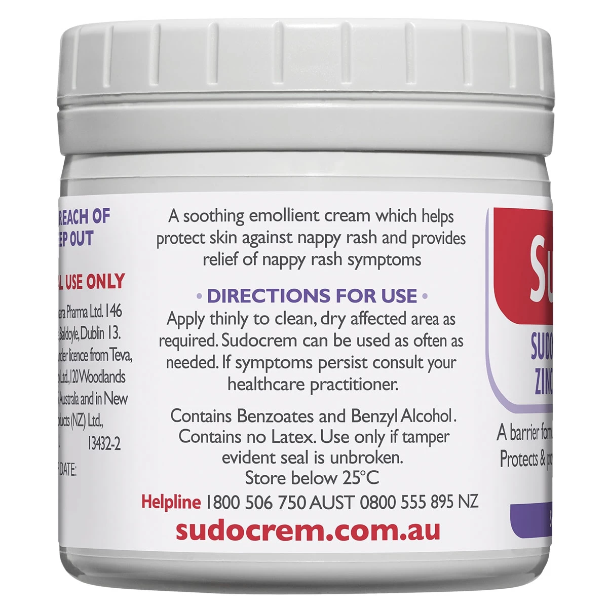 Sudocrem is a soothing emollient cream which helps in the management of nappy rash. The Zinc Oxide provides a barrier, protecting baby’s delicate skin between nappy changes. This cream is used to soothe and protect your baby from nappy rash. Sudocrem is a gentle, effective way to prevent nappy rash and soothe symptoms.