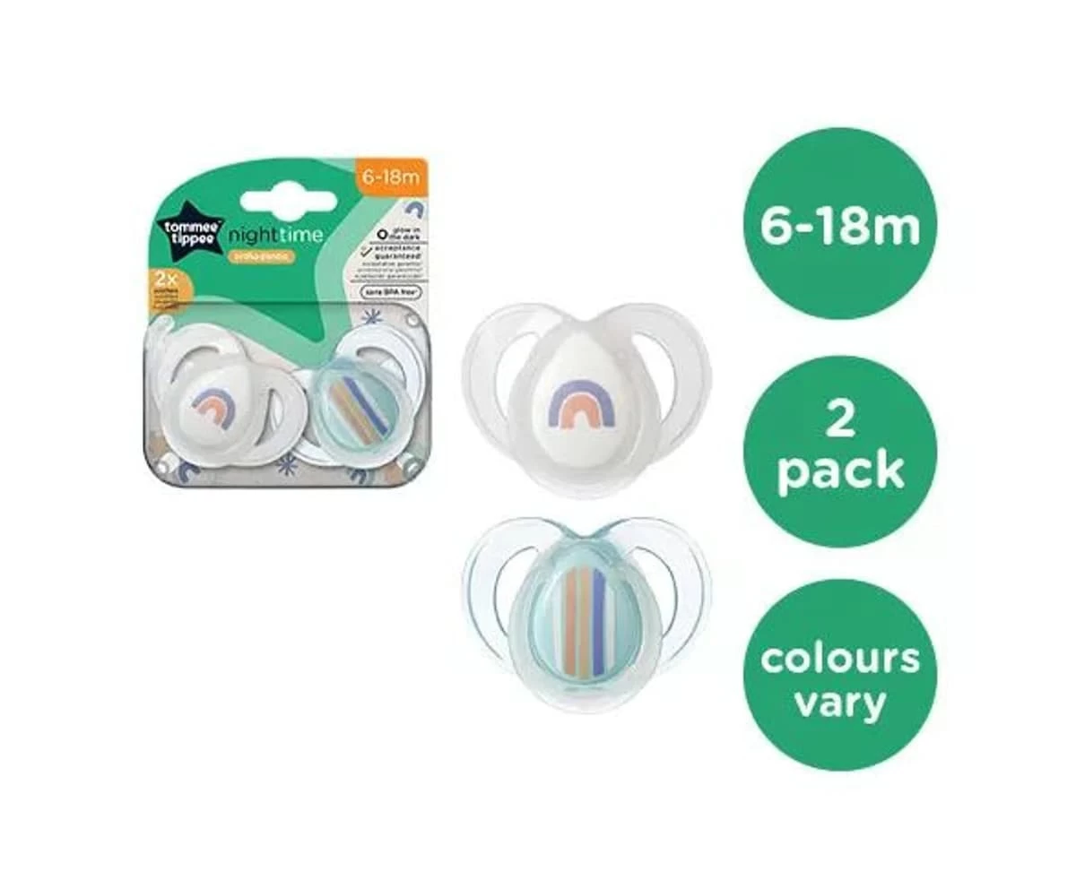 Tommee Tippee Closer to Nature Night Time Soothers 6-18 Months 2 Pack (Colours selected at random)