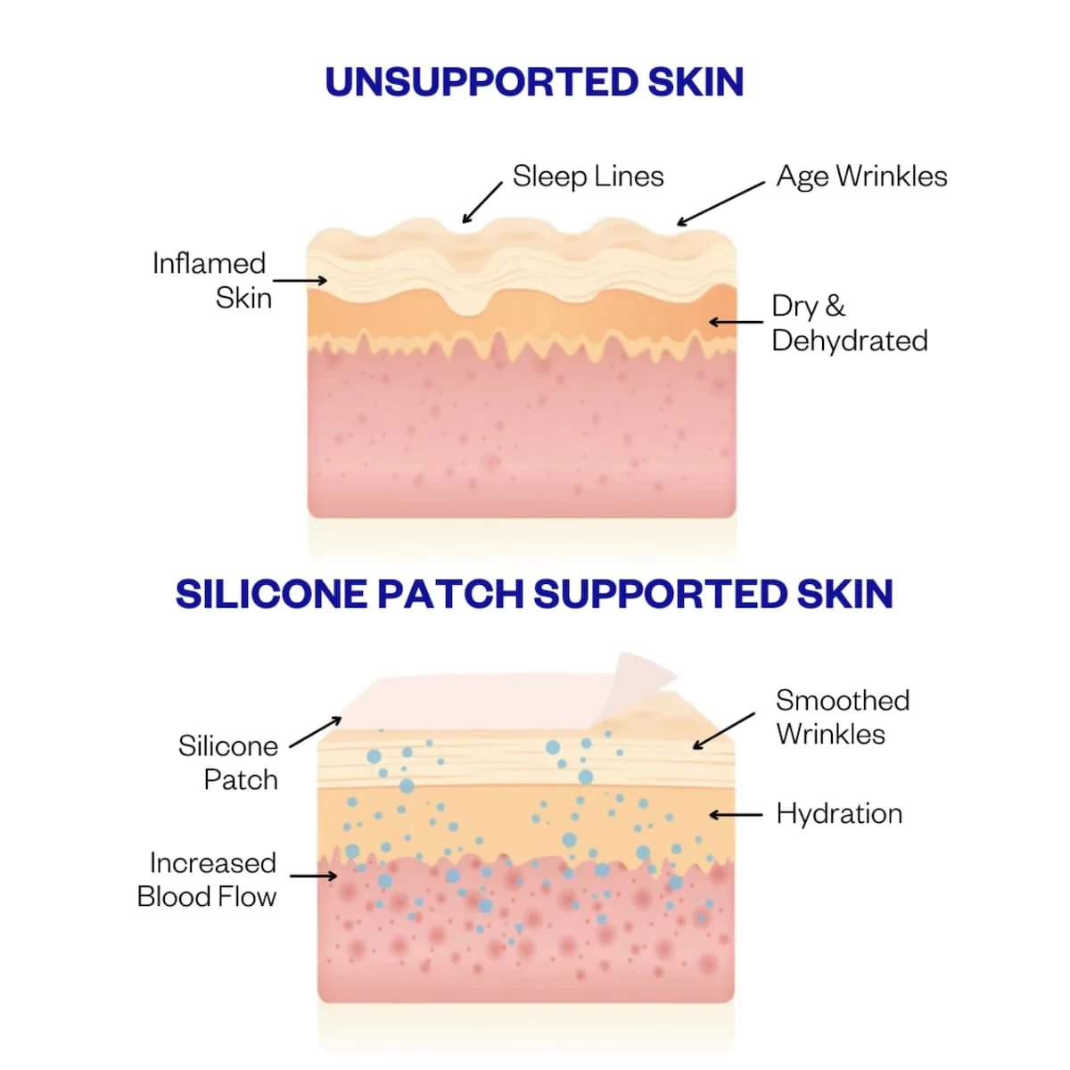 Ideally worn overnight while you sleep, our anti wrinkle Chest Pads are Made in the USA and are 100% Medical Grade Silicone. The anti wrinkle silicone Chest Pad is a wrinkle treatment that works by comfortably hugging your décolleté and prevents the delicate skin on your chest from being able to crease or wrinkle. At the same time, the décolleté pad supports the skin’s natural ability to hydrate the skin, retain the moisture, stimulate blood flow and helps boost collagen production – that vital protein we lose as our skin ages.
